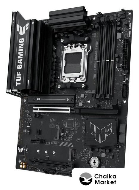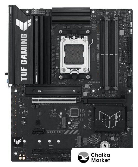 ATX, чипсет AMD B850, память 4xDDR5 до 8000 МГц, слоты: 4xPCIe x16 5.0, 3xM.2, 802.11ax (Wi-Fi 6E)+Bluetooth 5.3, 8+2+1 фаз питания
