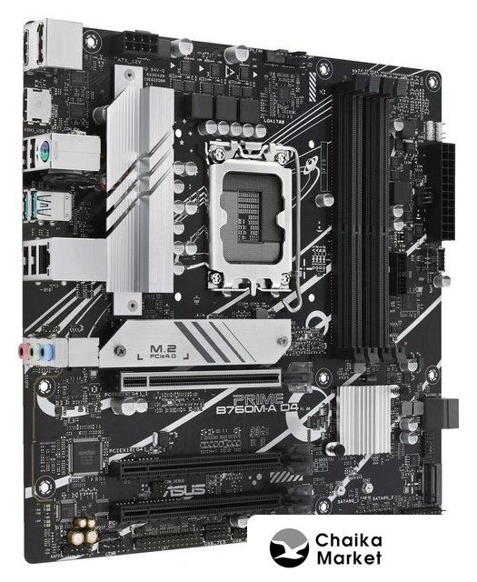 mATX, сокет Intel LGA1700, чипсет Intel B760, память 4xDDR4 до 5333 МГц, слоты: 3xPCIe x16 4.0, 2xM.2, 802.11ax (Wi-Fi 6)+Bluetooth 5.2