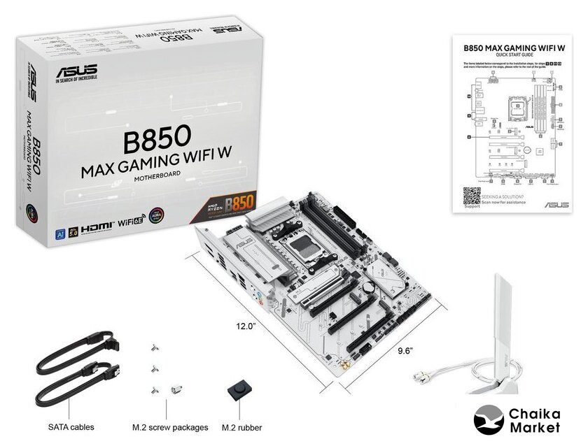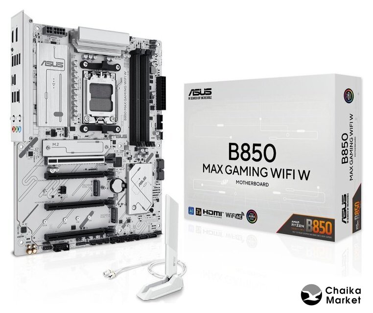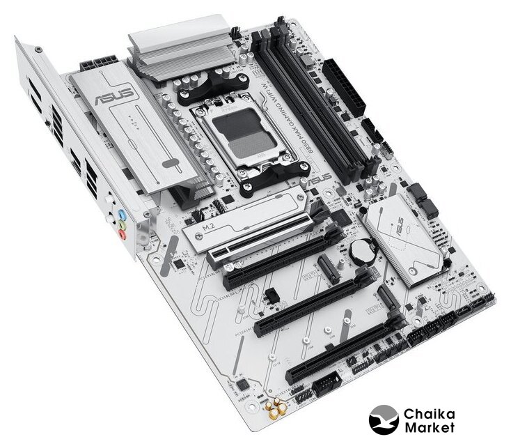 mATX, чипсет AMD B850, память 2xDDR5 до 8400 МГц, слоты: 2xPCIe x16 5.0, 2xM.2, 8+2+1 фаз питания