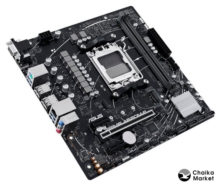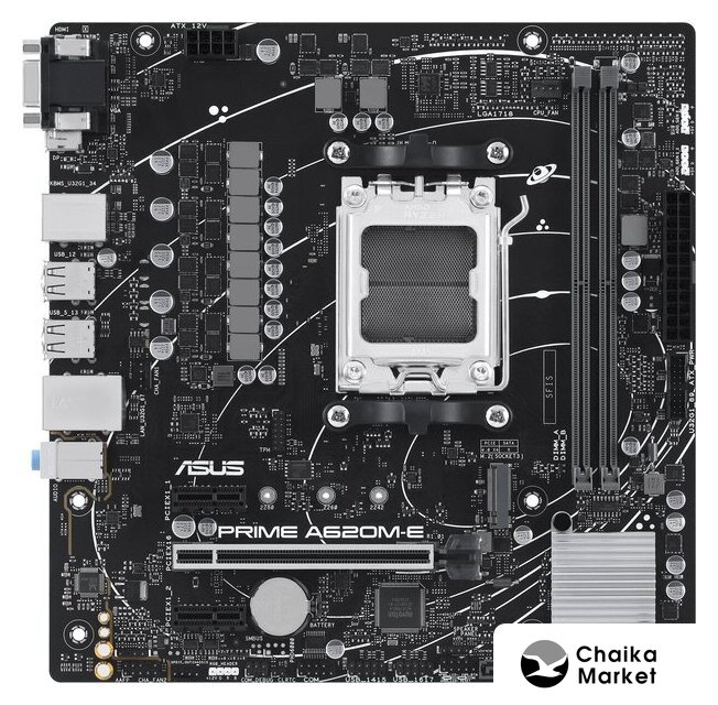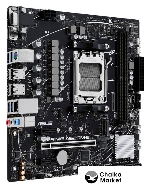mATX, сокет AMD AM5, чипсет AMD A620, память 4xDDR5 до 7600 МГц, слоты: 1xPCIe x16 4.0, 2xPCIe x1, 2xM.2