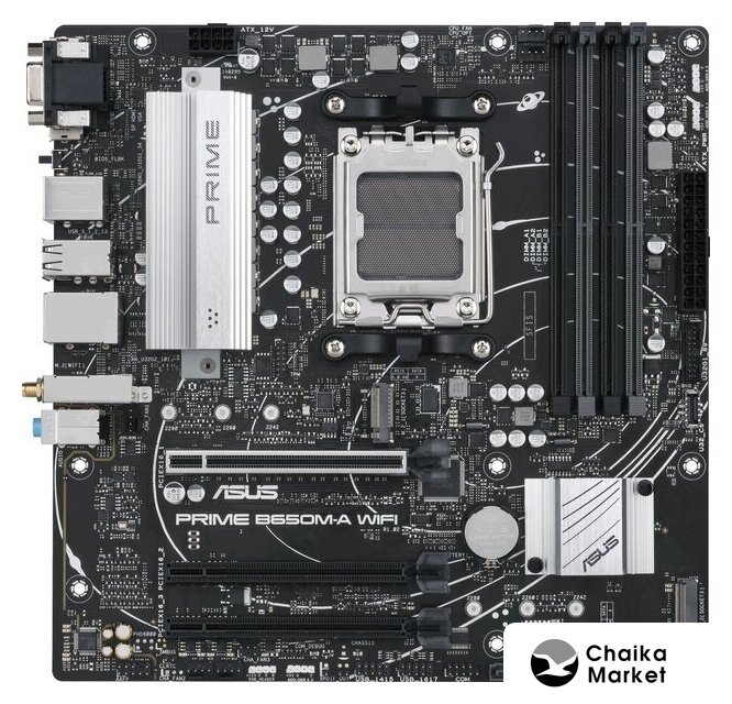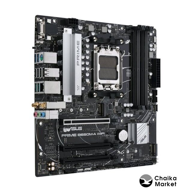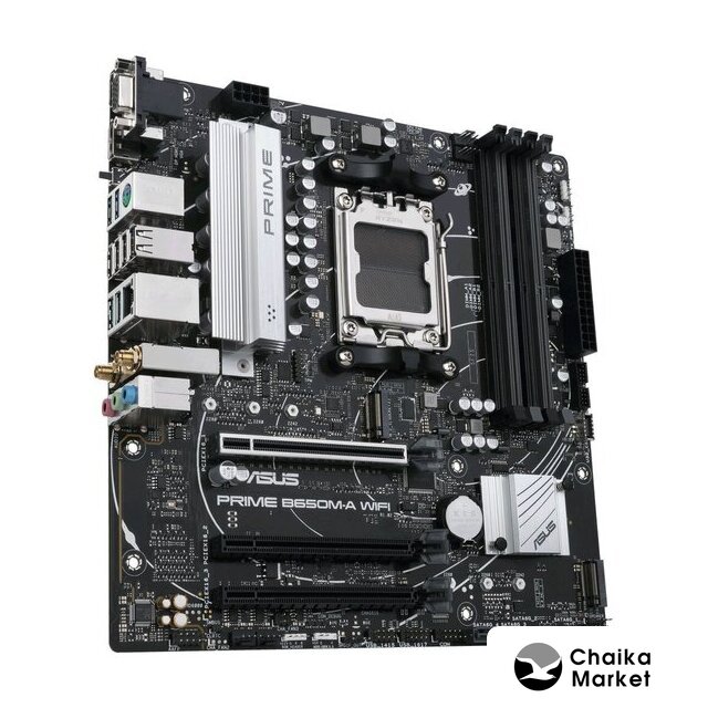 mATX, сокет AMD AM5, чипсет AMD B650, память 4xDDR5 до 5600 МГц, слоты: 3xPCIe x16 4.0, 2xM.2, 802.11ax (Wi-Fi 6)+Bluetooth 5.2