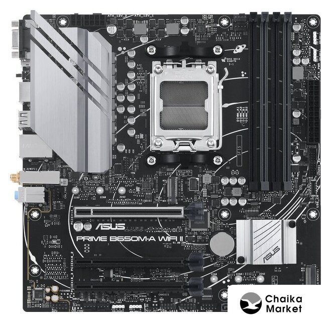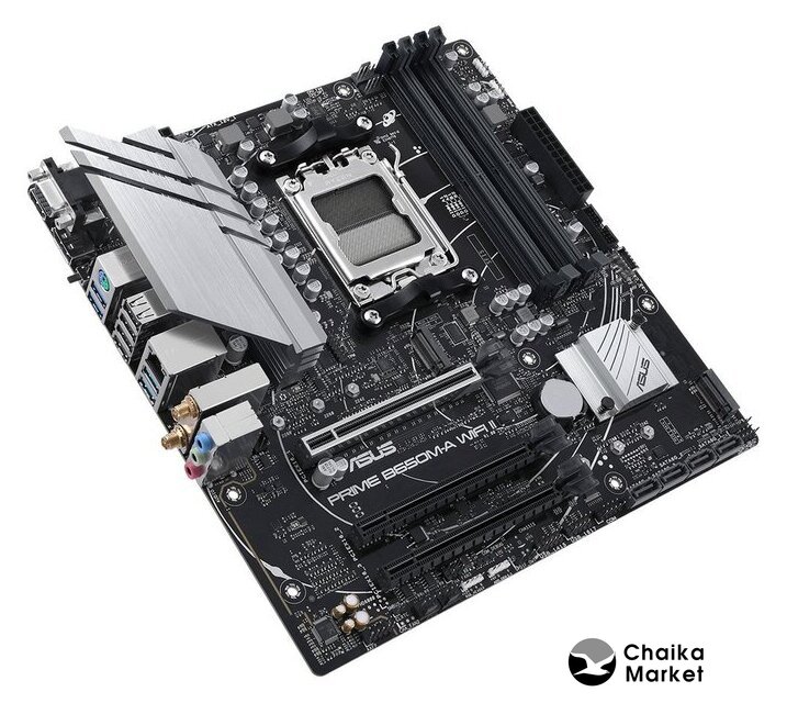 mATX, сокет AMD AM5, чипсет AMD B850, память 4xDDR5 до 8200 МГц, слоты: 2xPCIe x16 5.0, 2xM.2, 8+2+2 фаз питания