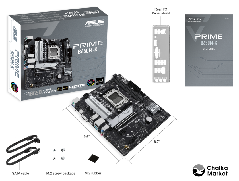 mATX, сокет AMD AM5, чипсет AMD B650, память 2xDDR5 до 6800 МГц, слоты: 1xPCIe x16 4.0, 1xPCIe x1, 1xM.2