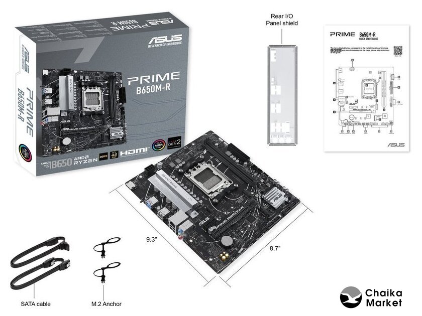 mATX, чипсет AMD B850, память 4xDDR5 до 8000 МГц, слоты: 2xPCIe x16 5.0, 3xM.2, 802.11ax (Wi-Fi 6E)+Bluetooth 5.3, 8+2+1 фаз питания