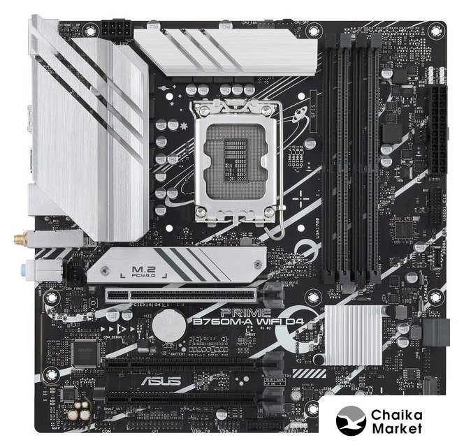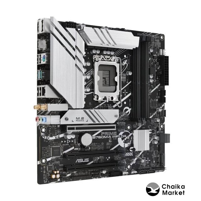 mATX, сокет Intel LGA1700, чипсет Intel B760, память 4xDDR4 до 5333 МГц, слоты: 2xPCIe x16 4.0, 1xPCIe x1, 2xM.2, 802.11ax (Wi-Fi 6E)+Bluetooth 5.3, 12+1 фаз питания