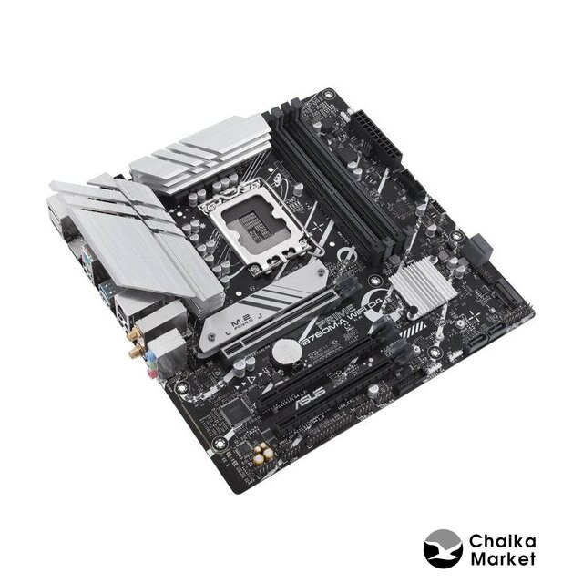 mATX, сокет Intel LGA1700, чипсет Intel B760, память 4xDDR5 до 7200 МГц, слоты: 2xPCIe x16 5.0, 1xPCIe x1, 3xM.2, 7+1+1 фаз питания