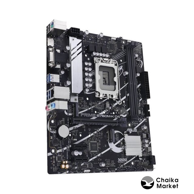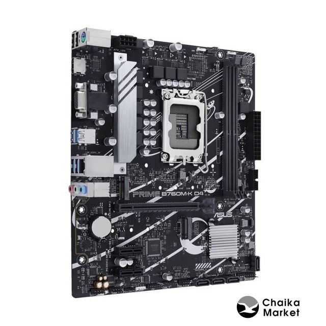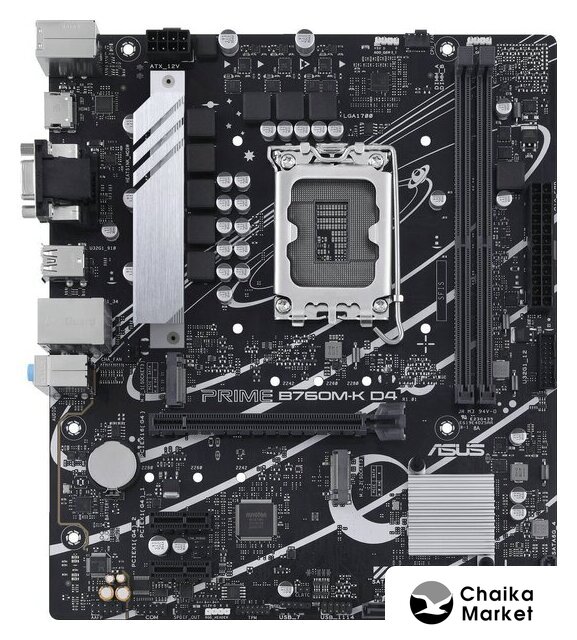 mATX, сокет Intel LGA1700, чипсет Intel B760, память 4xDDR4 до 4800 МГц, слоты: 1xPCIe x16 4.0, 2xPCIe x1, 2xM.2