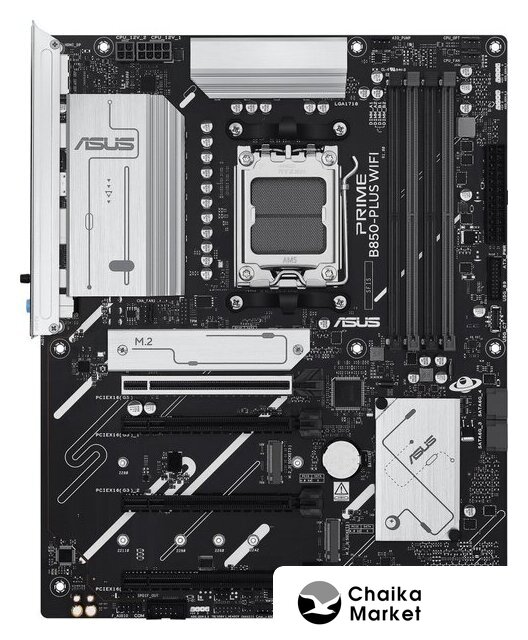 ATX, чипсет AMD B850, память 4xDDR5 до 8000 МГц, слоты: 4xPCIe x16 5.0, 3xM.2, 802.11ax (Wi-Fi 6E)+Bluetooth 5.3, 8+2+1 фаз питания