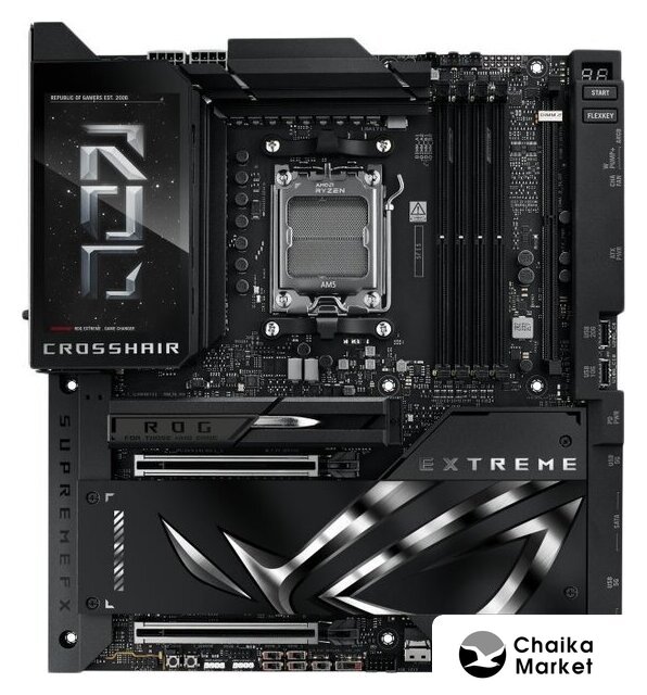 ATX, чипсет AMD X870E, память 2xDDR5 до 9600 МГц, слоты: 2xPCIe x16 5.0, 1xPCIe x4, 1xPCIe x1, 5xM.2, 802.11be (Wi-Fi 7)+Bluetooth 5.4, 18+2+2 фаз питания
