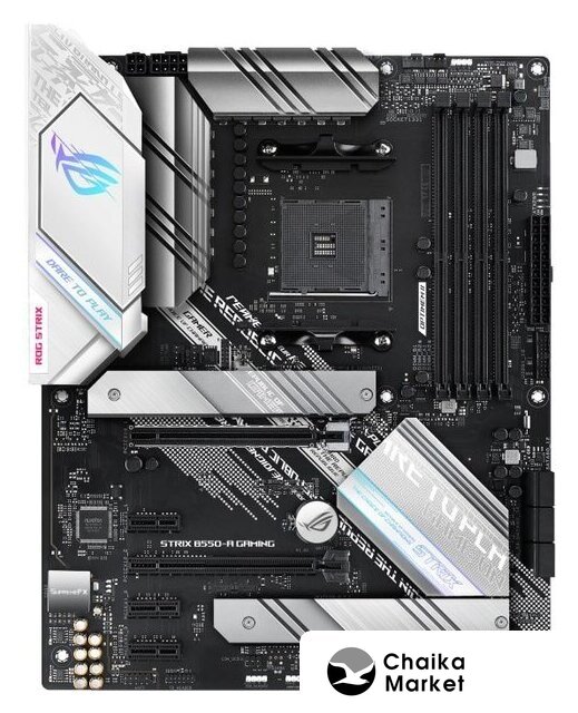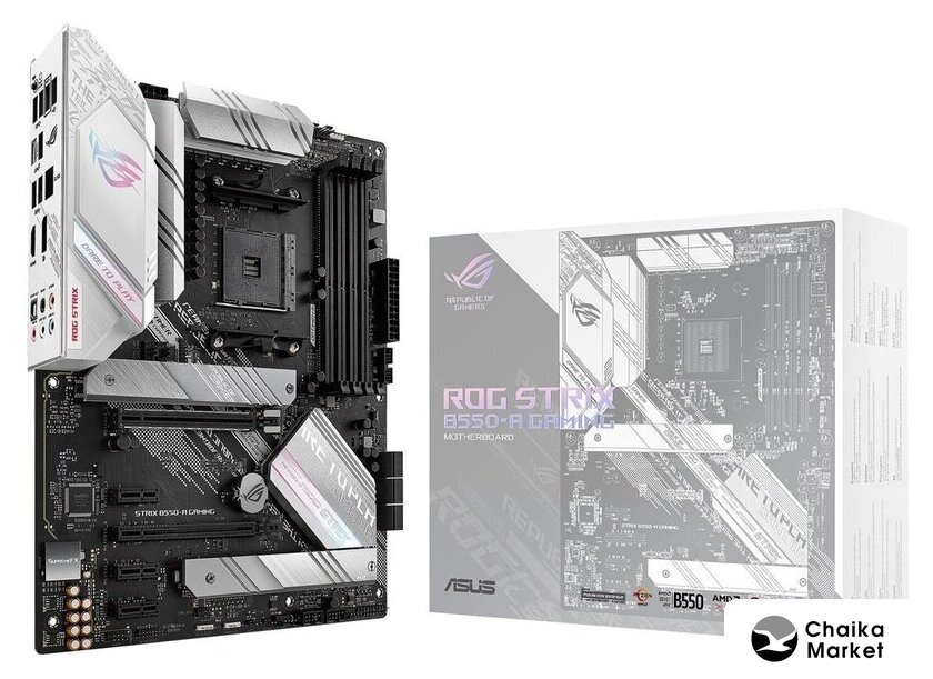 ATX, сокет AMD AM4, чипсет AMD B550, память 4xDDR4 до 4933 МГц, слоты: 3xPCIe x16 4.0, 1xPCIe x1, 2xM.2, 10 фаз питания