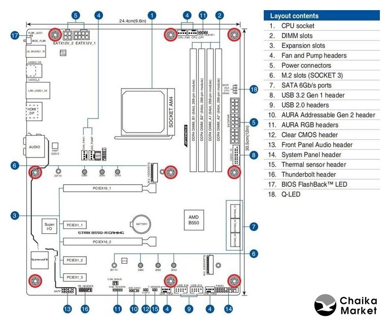 Описание внутренних разъемов | 1 x CPU Fan connector(s)1 x CPU OPT Fan connector(s)3 x Chassis Fan connector(s)1 x AIO_PUMP connector1 x AAFP connector2 x Aura RGB Strip Header(s)1 x Addressable Gen 2 header(s)1 x USB 3.2 Gen 1(up to 5Gbps) connector(s) support(s) additional 2 USB 3.2 Gen 1 port(s)2 x USB 2.0 connector(s) support(s) additional 4 USB 2.0 port(s)1 x M.2 Socket 1 with M key, type 2242/2260/2280/22110 storage devices support(SATA & PCIe 4.0 x4 mode)1 x M.2 Socket 2 with M key, type 2242/2260/2280/22110 storage devices support (SATA & PCIE 3.0 x 4 mode)6 x SATA 6Gb/s connector(s)1 x Thunderbolt header(s)1 x 24-pin EATX Power connector(s)1 x 8-pin ATX 12V Power connector(s)1 x 4-pin ATX 12V Power connector(s)1 x System panel(s)1 x Thermal sensor connector(s)1 x Clear CMOS jumper(s) |