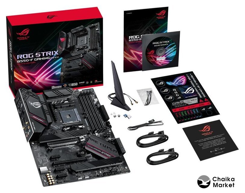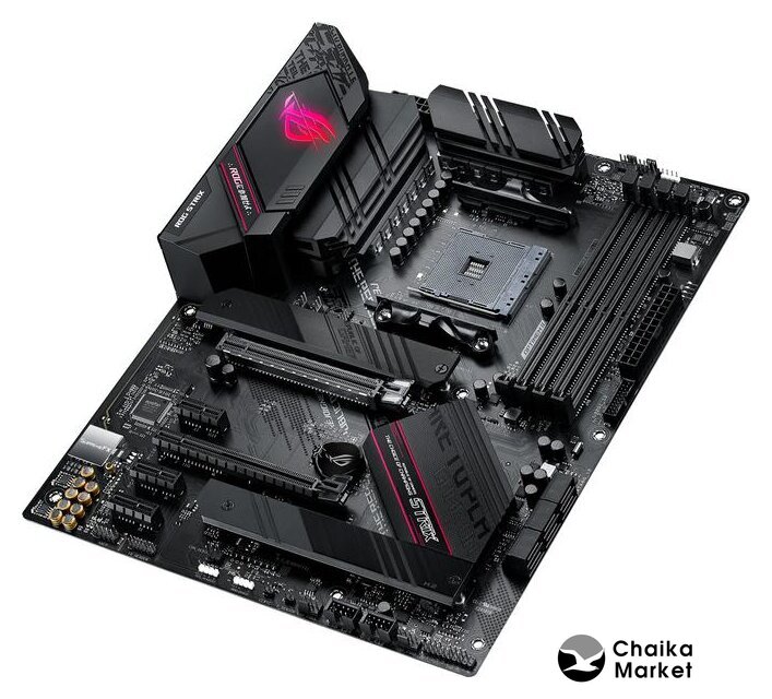 ATX, сокет AMD AM4, чипсет AMD B550, память 4xDDR4 до 4733 МГц, слоты: 2xPCIe x16 4.0, 3xPCIe x1, 2xM.2, 10+3 фаз питания