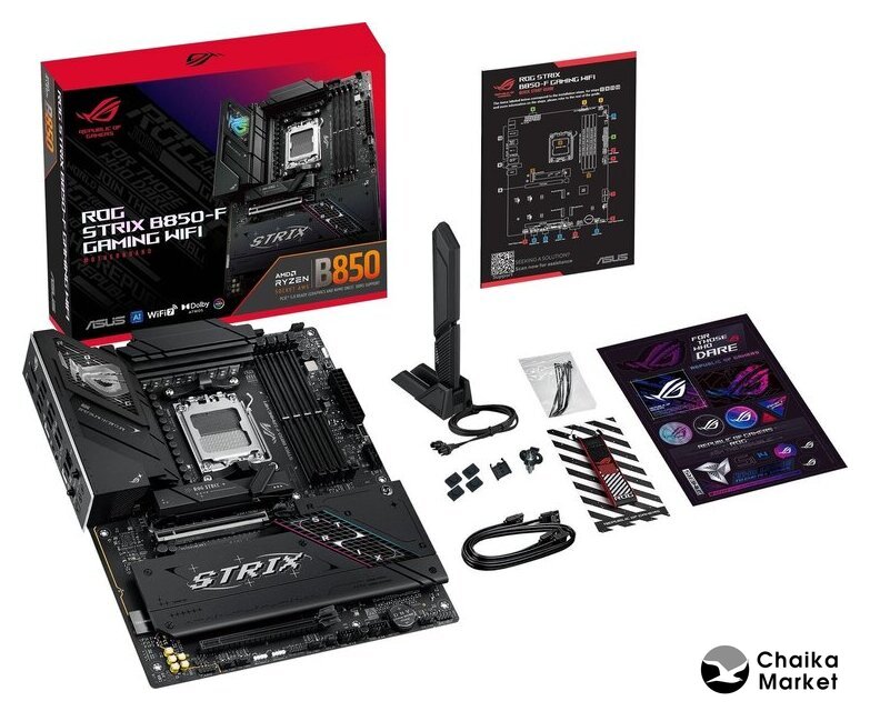 | Комплектация | - два кабеля SATA- Wi-Fi антенна - набор кабельных стяжек- монтажный комплект для M.2- ROG кей чейн - стикеры ROG Strix- документация |
