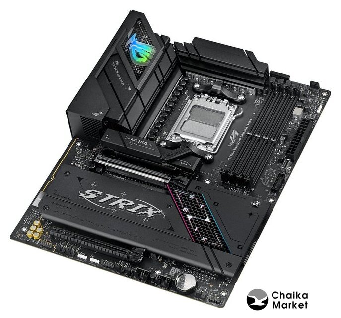 mATX, чипсет AMD B850, память 4xDDR5 до 8200 МГц, слоты: 2xPCIe x16 5.0, 2xM.2, 802.11ax (Wi-Fi 6E)+Bluetooth 5.3, 8+2+2 фаз питания