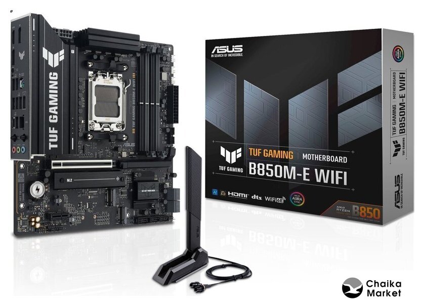 mATX, чипсет AMD B850, память 4xDDR5 до 8000 МГц, слоты: 4xPCIe x16 5.0, 3xM.2, 802.11ax (Wi-Fi 6)+Bluetooth 5.4, 8+2+1 фаз питания