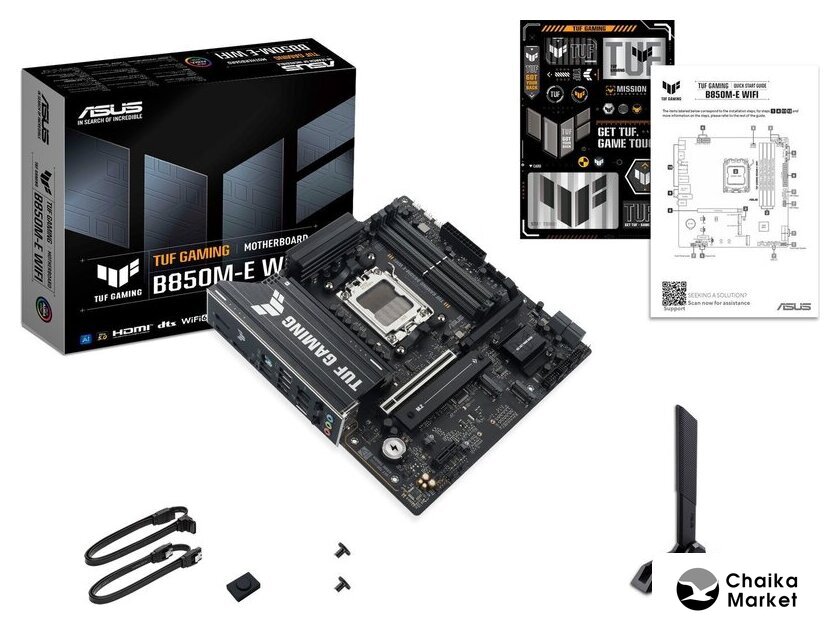 | Комплектация | - 2 x кабель SATA - Wi-Fi антенна - наклейка TUF Gaming - резиновый комплект для M.2 - комплект винтов для M.2 SSD - документация |