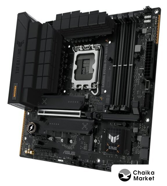 mATX, сокет Intel LGA1700, чипсет Intel B760, память 4xDDR5 до 7800 МГц, слоты: 2xPCIe x16 5.0, 1xPCIe x1, 2xM.2, 802.11ax (Wi-Fi 6E)+Bluetooth 5.3, 12+1+1 фаз питания