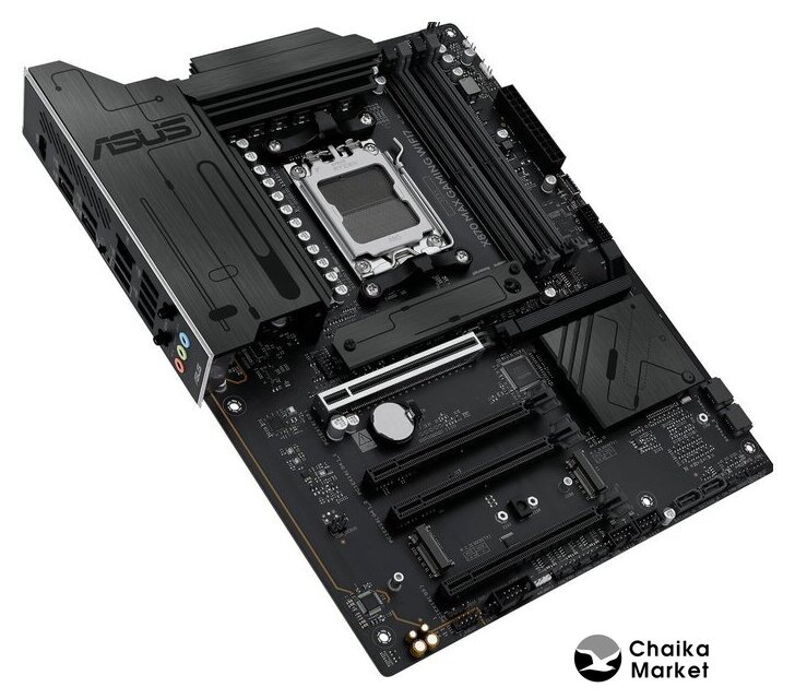 mATX, сокет AMD AM5, чипсет AMD B850, память 4xDDR5 до 8200 МГц, слоты: 2xPCIe x16 5.0, 2xM.2, 802.11ax (Wi-Fi 6E)+Bluetooth 5.3, 12+2+2 фаз питания