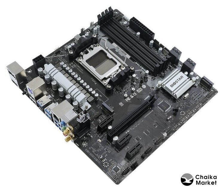 mATX, сокет AMD AM5, чипсет AMD B650, память 2xDDR5 до 6400 МГц, слоты: 1xPCIe x16 4.0, 1xPCIe x1, 1xM.2, 5+2+2 фаз питания