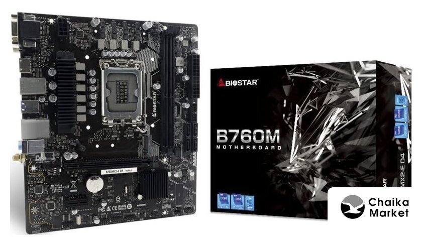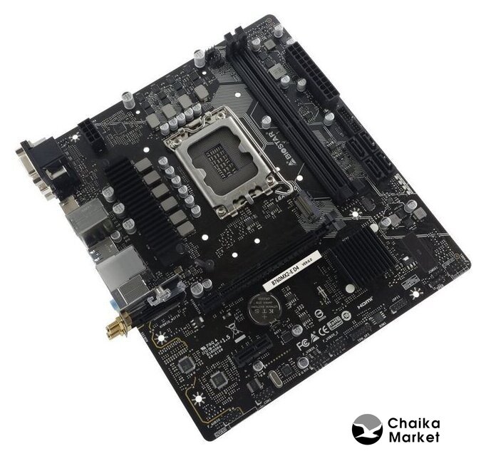 mATX, сокет Intel LGA1700, чипсет Intel B760, память 2xDDR4 до 5333 МГц, слоты: 1xPCIe x16 4.0, 1xPCIe x1, 2xM.2