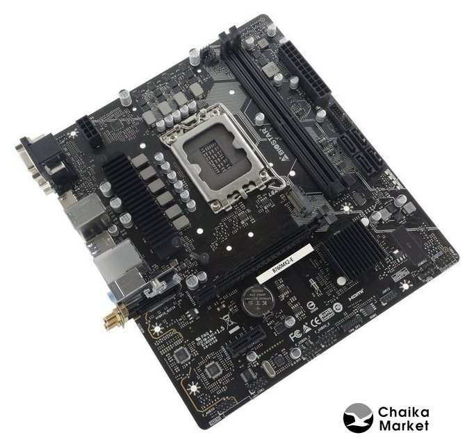 mATX, сокет Intel LGA1700, чипсет Intel B760, память 2xDDR5 до 6400 МГц, слоты: 1xPCIe x16 4.0, 1xPCIe x1, 1xM.2