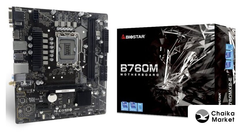 mATX, сокет Intel LGA1700, чипсет Intel B760, память 2xDDR4 до 5333 МГц, слоты: 1xPCIe x16 4.0, 2xPCIe x1, 2xM.2