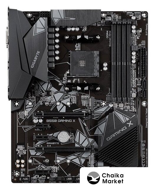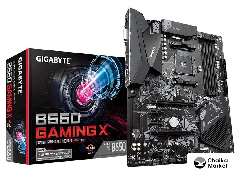 ATX, сокет AMD AM4, чипсет AMD B550, память 4xDDR4 до 4400 МГц, слоты: 2xPCIe x16 4.0, 2xPCIe x1, 2xM.2, 10+2+1 фаз питания