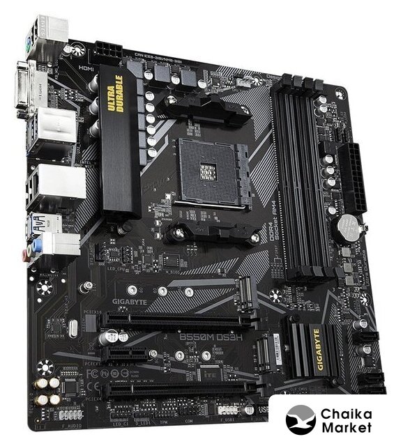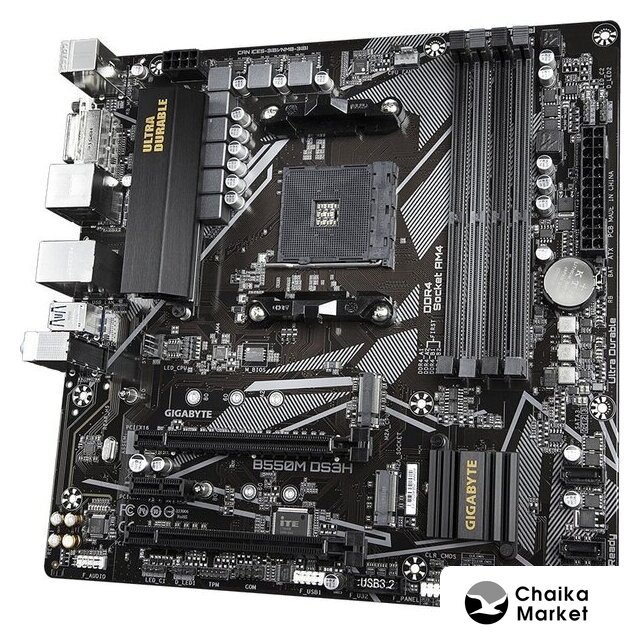 mATX, сокет AMD AM4, чипсет AMD B450, память 4xDDR4 до 3200 МГц, слоты: 2xPCIe x16 3.0 и 2.0, 1xPCIe x1, 2xM.2
