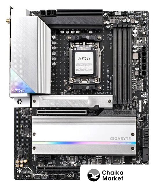 mATX, сокет AMD AM5, чипсет AMD B850, память 4xDDR5 до 8200 МГц, слоты: 2xPCIe x16 5.0, 2xM.2, 802.11ax (Wi-Fi 6E)+Bluetooth 5.3, 12+2+2 фаз питания