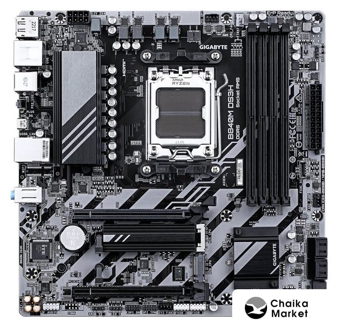 mATX, сокет AMD AM5, чипсет AMD B650, память 4xDDR5 до 7200 МГц, слоты: 2xPCIe x16 4.0, 3xM.2, 8+2+1 фаз питания