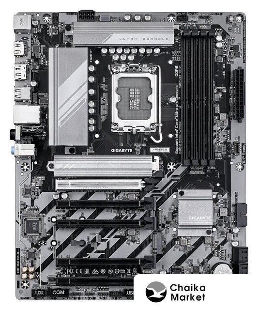 mATX, сокет Intel LGA1851, чипсет Intel B860, память 4xDDR5 до 9066 МГц, слоты: 4xPCIe x16 5.0, 2xM.2, 802.11ax (Wi-Fi 6E)+Bluetooth 5.3, 5+1+2 фаз питания