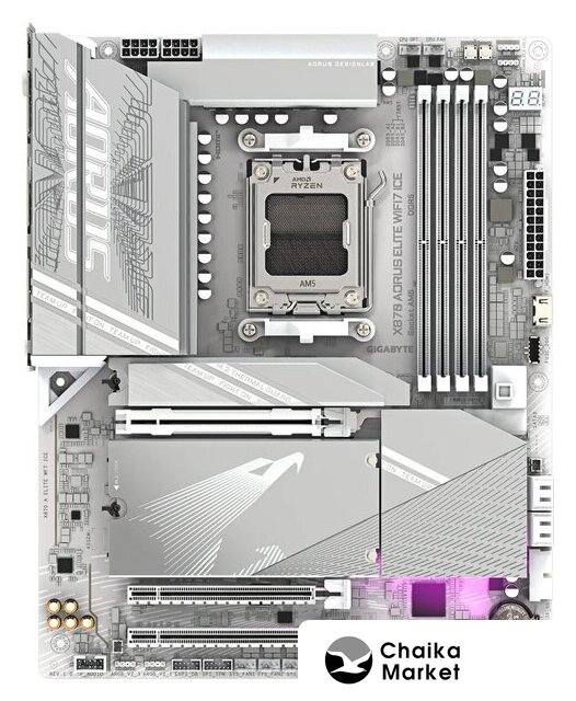 ATX, сокет AMD AM5, чипсет AMD X870E, память 4xDDR5 до 8000 МГц, слоты: 3xPCIe x16 5.0, 4xM.2, 802.11be (Wi-Fi 7)+Bluetooth 5.4, 16+2+2 фаз питания