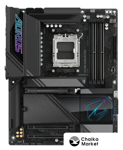 ATX, сокет AMD AM5, чипсет AMD X870, память 4xDDR5 до 8000 МГц, слоты: 2xPCIe x16 5.0, 4xM.2, 802.11be (Wi-Fi 7)+Bluetooth 5.4, 16+2+1 фаз питания
