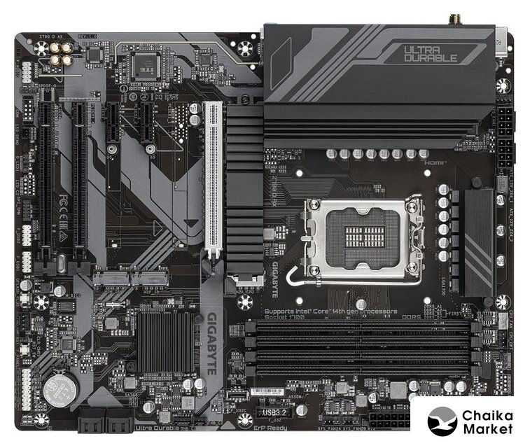 ATX, сокет Intel LGA1700, чипсет Intel Z790, память 4xDDR5 до 7800 МГц, слоты: 2xPCIe x16 5.0, 1xPCIe x4, 2xPCIe x1, 4xM.2, 802.11ax (Wi-Fi 6E)+Bluetooth 5.3, 16+1 фаз питания
