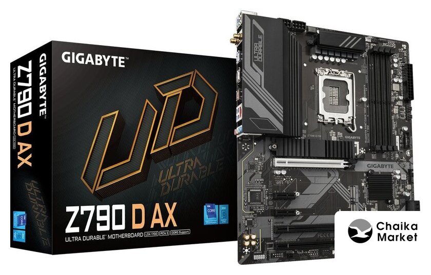 ATX, сокет Intel LGA1700, чипсет Intel Z790, память 4xDDR5 до 7200 МГц, слоты: 2xPCIe x16 5.0, 3xPCIe x1, 4xM.2, 14+1+1 фаз питания