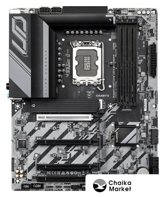 ATX, сокет Intel LGA1851, чипсет Intel B860, память 4xDDR5 до 9066 МГц, слоты: 3xPCIe x16 5.0, 3xM.2, 802.11ax (Wi-Fi 6E)+Bluetooth 5.3, 12+1+2 фаз питания