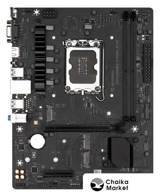 mATX, сокет Intel LGA1700, чипсет Intel B760, память 2xDDR4 до 3200 МГц, слоты: 1xPCIe x16 4.0, 1xPCIe x1, 2xM.2, 6+1+1 фаз питания