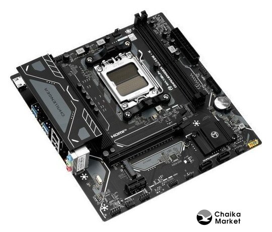 mATX, чипсет AMD B650, память 2xDDR5 до 6000 МГц, слоты: 1xPCIe x16 4.0, 1xPCIe x1, 1xM.2, 8 фаз питания