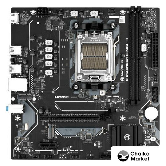 mATX, сокет AMD AM5, чипсет AMD B650, память 2xDDR5 до 6800 МГц, слоты: 1xPCIe x16 4.0, 1xPCIe x1, 1xM.2
