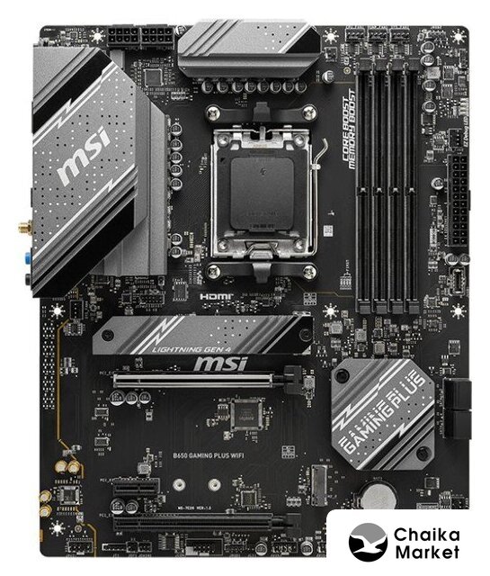ATX, сокет AMD AM5, чипсет AMD B650, память 4xDDR5 до 7200 МГц, слоты: 2xPCIe x16 4.0, 1xPCIe x1, 3xM.2, 14+2+1 фаз питания