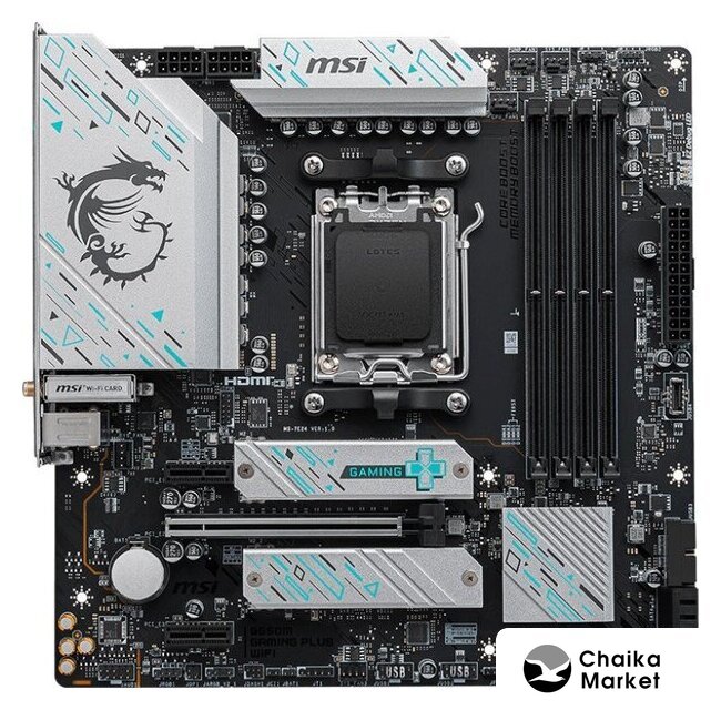 ATX, сокет AMD AM5, чипсет AMD A620, память 4xDDR5 до 7600 МГц, слоты: 2xPCIe x16 4.0, 2xM.2, 802.11ax (Wi-Fi 6)+Bluetooth 5.3, 12+2 фаз питания