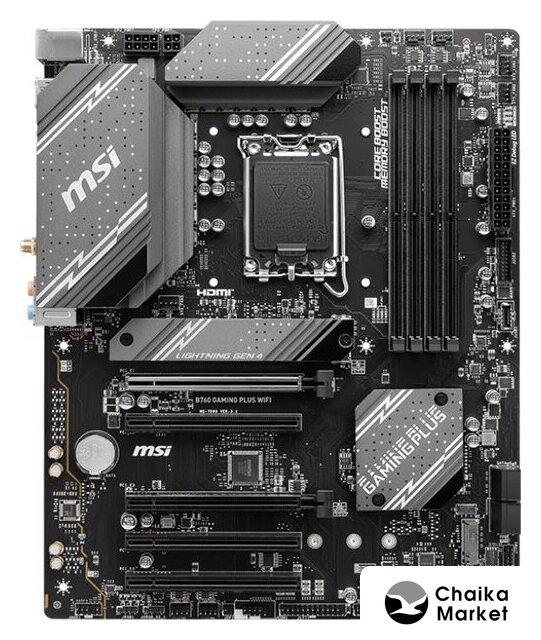 ATX, сокет Intel LGA1700, чипсет Intel B760, память 4xDDR5 до 7200 МГц, слоты: 2xPCIe x16 5.0, 2xPCIe x1, 3xM.2