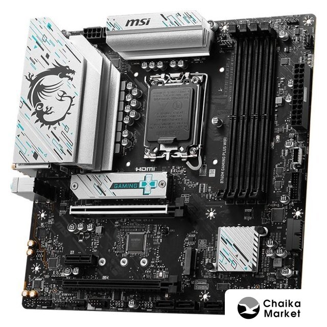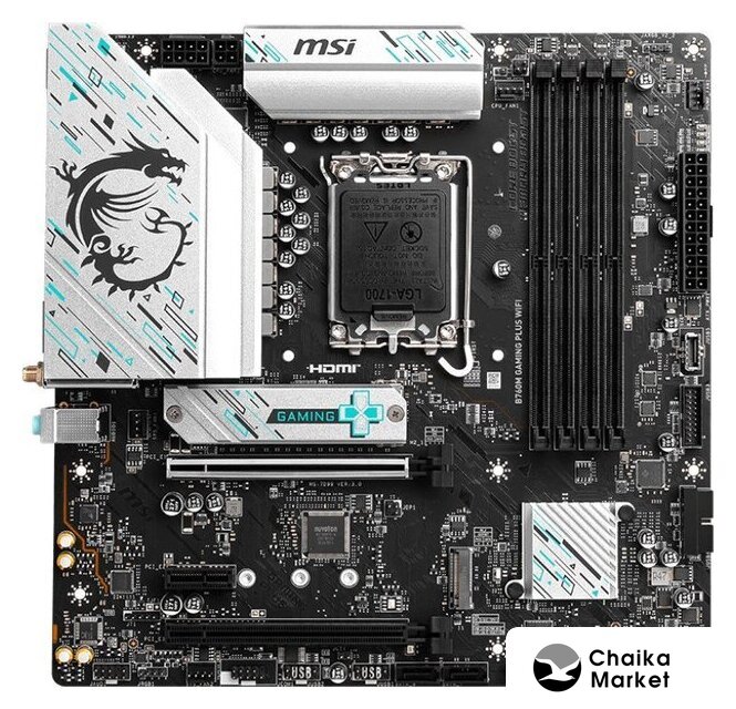 mATX, сокет Intel LGA1700, чипсет Intel B760, память 4xDDR5 до 7200 МГц, слоты: 1xPCIe x16 5.0, 1xPCIe x1, 3xM.2, 802.11ax (Wi-Fi 6E)+Bluetooth 5.3, 12+1+1 фаз питания