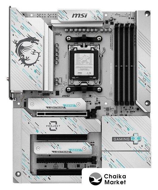 ATX, сокет AMD AM5, чипсет AMD X870, память 4xDDR5 до 8200 МГц, слоты: 4xPCIe x16 5.0, 3xM.2, 802.11be (Wi-Fi 7)+Bluetooth 5.4, 14+2+1 фаз питания