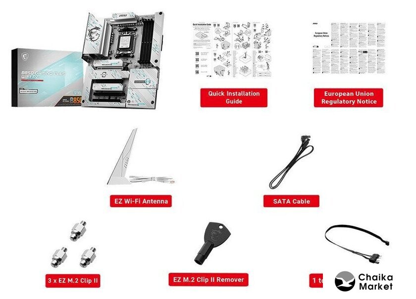 | Комплектация | - EZ Wi-Fi антенна - кабель SATA- 3 винта EZ M.2 Clip II- EZ M.2 Clip II экстрактор- 1-2 EZ кабель - документация |
