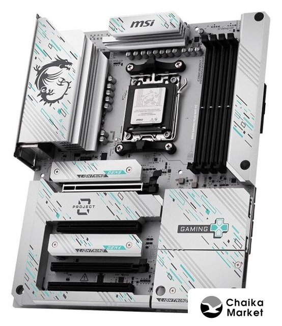 mATX, сокет AMD AM5, чипсет AMD B650, память 4xDDR5 до 6400 МГц, слоты: 2xPCIe x16 4.0, 1xPCIe x1, 2xM.2, 802.11ax (Wi-Fi 6E)+Bluetooth 5.2