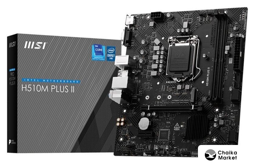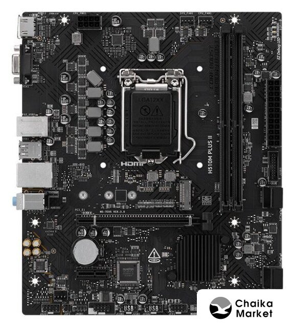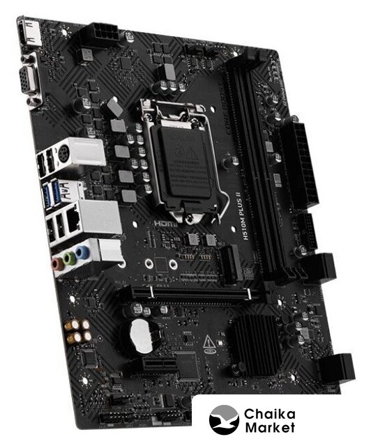 mATX, сокет Intel LGA1700, чипсет Intel H610, память 2xDDR5 до 5600 МГц, слоты: 1xPCIe x16, 1xPCIe x1, 1xM.2