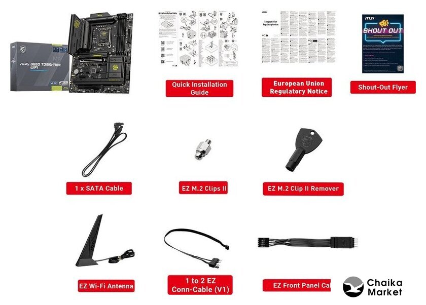 | Комплектация | - кабель SATA- EZ Wi-Fi антенна - EZ кабель передней панели- 1-2 EZ кабель - винт EZ M.2 Clip II- EZ M.2 Clip II экстрактор- документация |