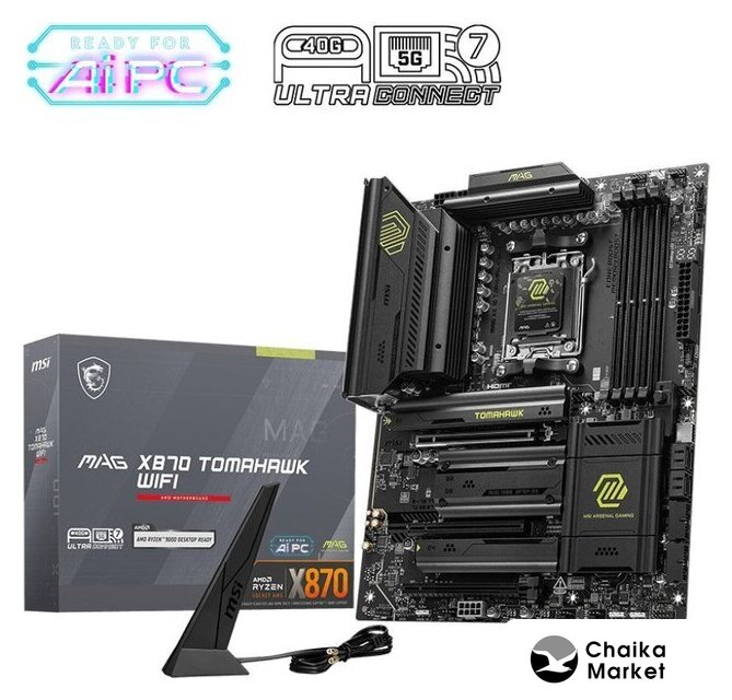 ATX, сокет AMD AM5, чипсет AMD X870E, память 4xDDR5 до 8200 МГц, слоты: 2xPCIe x16 5.0, 1xPCIe x1, 5xM.2, 802.11be (Wi-Fi 7)+Bluetooth 5.4, 20+2+1 фаз питания