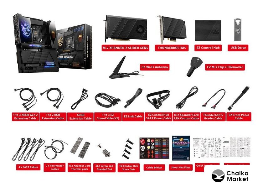 | Описание внутренних разъемов | 1x Thunderbolt5 card connector(JTBT5, support RTD3)1x Power Connector(ATX_PWR)2x Power Connector(CPU_PWR)1x Power Connector(PCIE_PWR 8pin)1x Front Type-C Quick Charge Connector(PD_PWR1)1x CPU Fan2x Combo Fan (Pump_Sys Fan)7x System Fan1x EZ Conn-header (JAF_2)2x Front Panel (JFP)1x Chassis Intrusion (JCI)1x Water Flow connector1x Slow Mode Booting Jumper(JSLOW)1x Front Audio (JAUD)2x Thermal Sensor connectors(T_SEN)1x Tuning Controller connector(JDASH)3x Addressable V2 RGB LED connector (JARGB_V2)1x RGB LED connector(JRGB)1x TPM pin header(Support TPM 2.0)V-check point4x USB 2.0 ports4x USB 5Gbps Type A ports1x USB 20Gbps Type C ports |